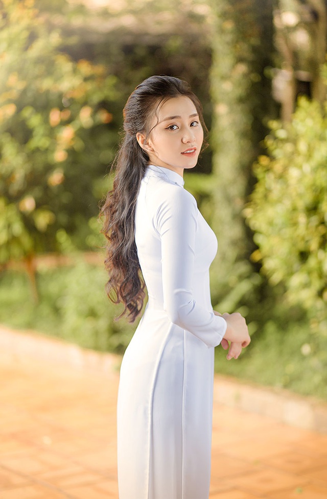| Nguyễn Ngọc Anh Thư (sinh năm 2003, Đắk Lắk) là một trong những cái tên mới gia nhập hội “nàng thơ” khi diện áo dài truyền thống. |